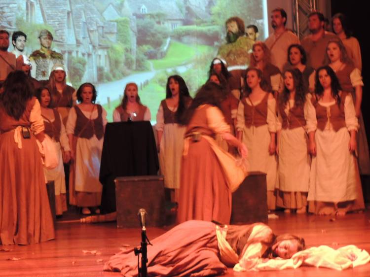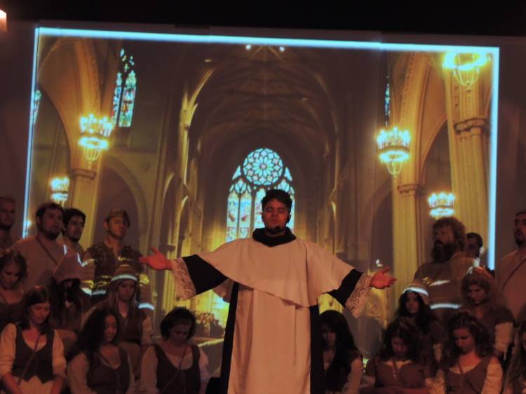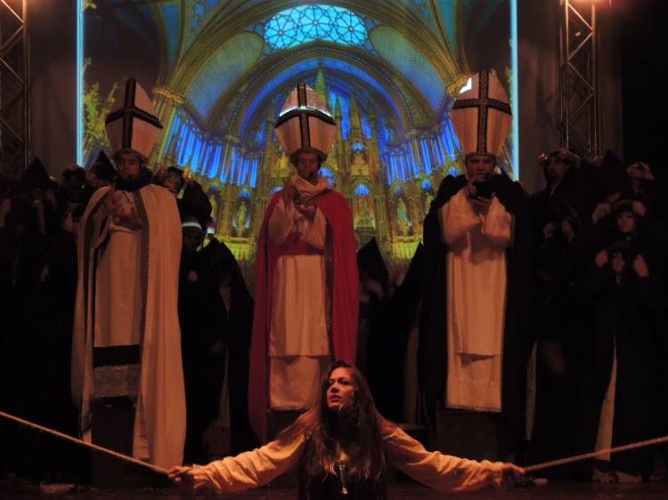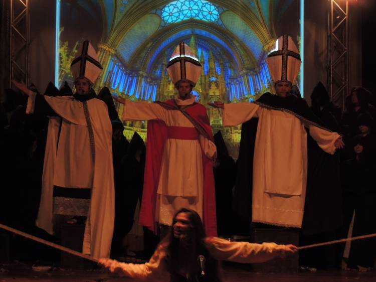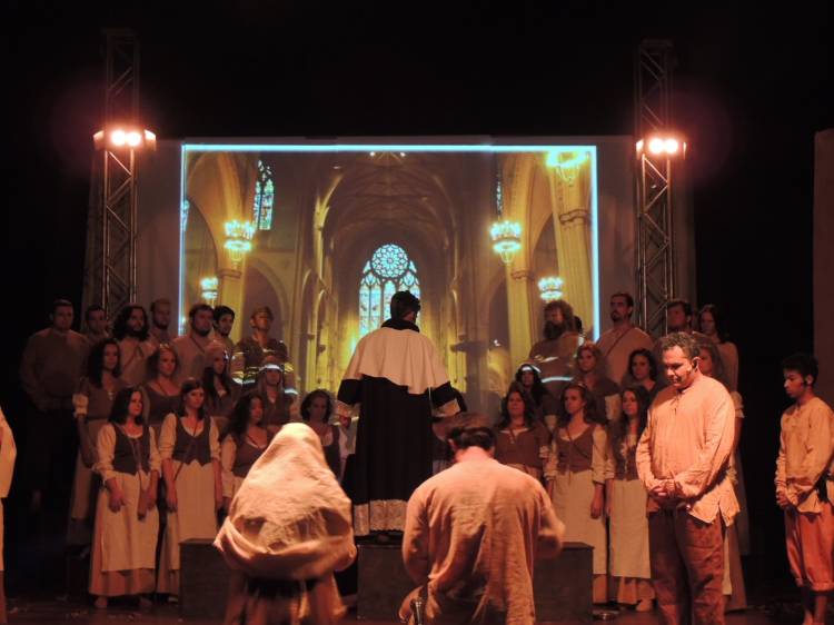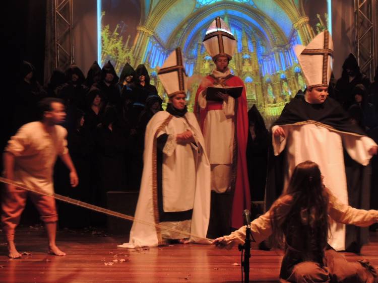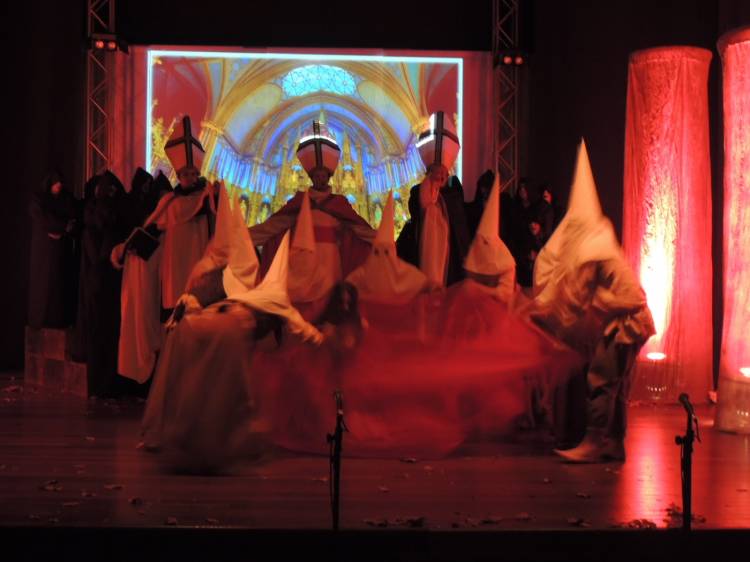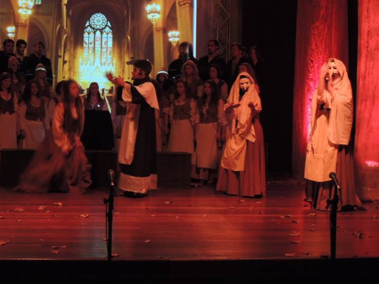 E a trilha sonora do espetáculo é um elemento importante no jogo de cena e que dá um toque especial para a produção. Composta por Ricardo Sensever, ela é baseada nos modos litúrgicos, utilizados na Idade Média. E é cantada ao vivo pelo Coral da Unijuí. “É uma iniciativa única na região e uma proposta bastante ousada. O espetáculo foi preparado com muita dedicação e empenho. Essa iniciativa evidencia as potencialidades do setor cultural de Ijuí e região”, analisa Letícia Buchmann, regente do Coral.