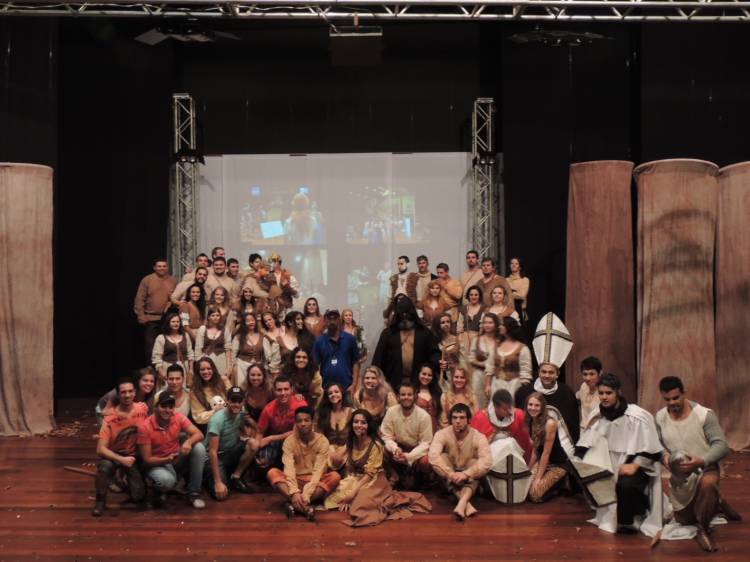 Com uma proposta diferenciada e ousada, o elenco é formado por 55 pessoas: 12 atores do Grupo de Teatro, três ginastas e quatro dançarinas da Cia. Cadagy, além de 36 integrantes do Coral.