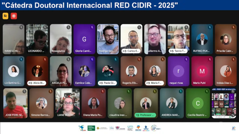 A playlist com a gravação dos encontros da Cátedra Doutoral Internacional Red CIDIR 2025 está disponível no link youtube.com/playlist?list=PLcluPu-q3jAse7T2EykhH0k6WavvEtDP1&si=yuniukvSH6M4p34h.