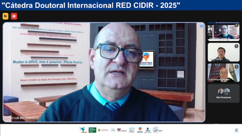 Com 193 participantes inscritos e matriculados, oriundos de seis países: Brasil, Argentina, Paraguai, Peru, Espanha, Angola e Estados Unidos, vinculados a 30 instituições de ensino superior, teve início, na última sexta-feira, 4 de julho, a 3ª edição da Cátedra Doutoral Internacional Red Cidir – 2025. Realizado pelo Programa de Pós-Graduação Stricto Sensu em Desenvolvimento Regional (PPGDR) da Unijuí, em parceria de outros cinco programas de pós-graduação, com o apoio institucional da Red de Cooperación Interuniversitaria para el Desarrollo e Integración Regional - Red Cidir.
