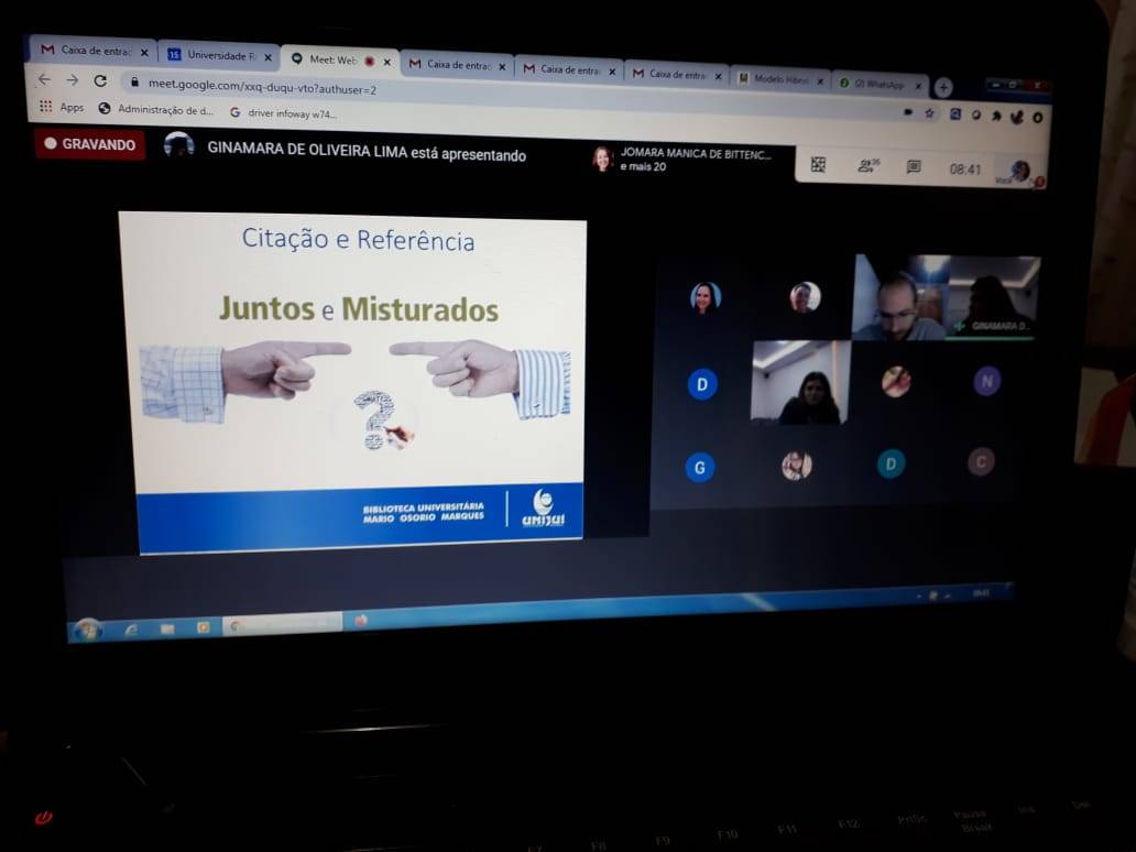 Nesse primeiro webinar foram apresentadas as normas da ABNT sobre citações e referências, bem como o uso do recurso “More” (Mecanismo Online para Referências), disponível no site da Biblioteca. Foram mais de 30 participantes, entre estudantes de graduação, pós-graduação e professores interessados em fazer a capacitação em um horário alternativo à aula.