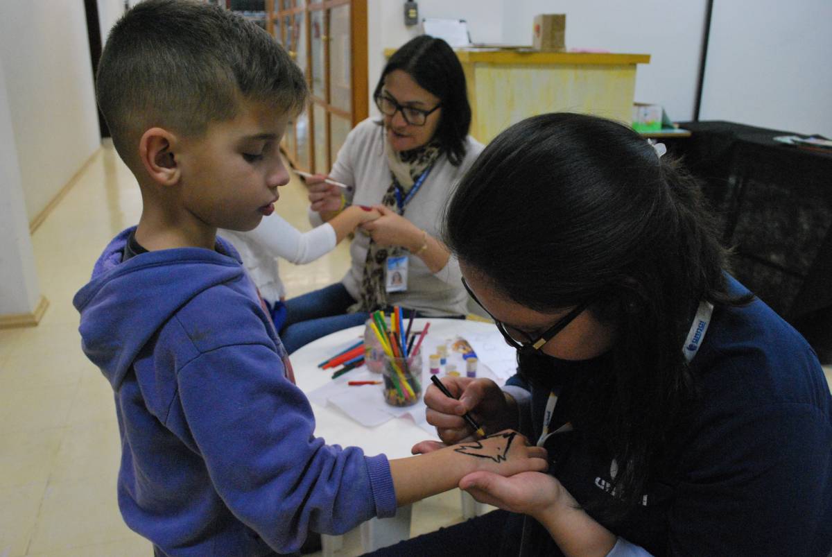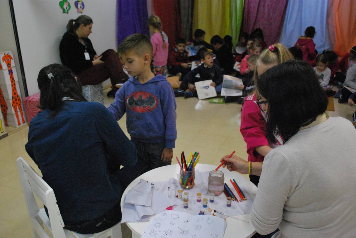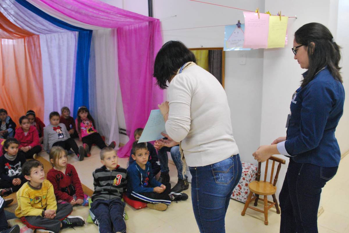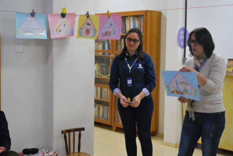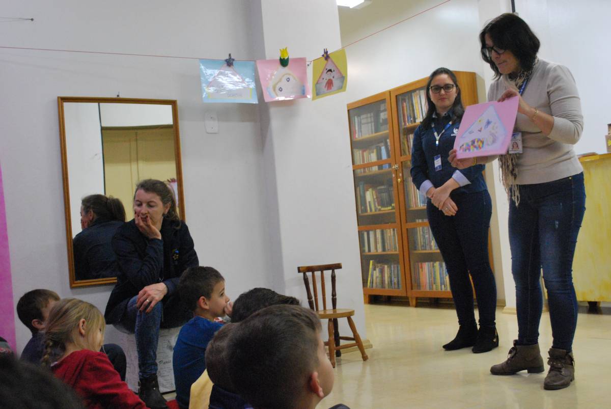 Depois de acomodada, a turma aproveitou o prazer de ouvir uma boa história, cantou músicas e teve contato com livros. Por fim, saíram da atividade com uma pintura na mão, momento bastante aguardado pelos pequenos. “Nós mesmos confeccionamos os fantoches e outros materiais utilizados na hora do conto. Estamos sempre procurando inovar”, salienta Fabiana D'Avila, técnica-administrativa da Unijuí. “Realizamos todo um preparo para não repetirmos histórias para a mesma escola. Também ensaiamos as histórias para nos preparar”, complementa Margarete Kuhn da Silva, funcionária da prefeitura de Três Passos.