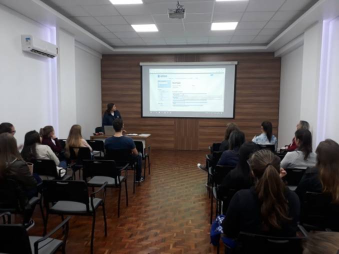 A Biblioteca Universitária Mario Osorio Marques está realizando capacitações para estudantes, tanto da graduação quanto da pós-graduação, acompanhados de professores. Na tarde desta terça-feira (06/08), estudantes da área da saúde, acompanhados da professora Ligia Bento Franz/DCVida, estiveram na Biblioteca para a realização do módulo básico de capacitação, ministrado pela bibliotecária Ginamara Oliveira de Lima. Também houve uma visita orientada ao acervo.