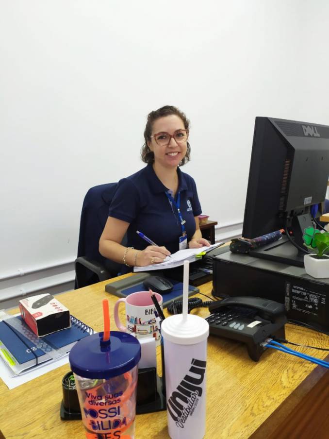 Sobre o trabalho na Biblioteca Universitária Mario Osorio Marques, acrescenta: “acompanhar a construção do desenvolvimento dos estudantes no percurso formativo na Universidade desde a graduação até o doutorado é desafiador. A nossa satisfação é servir de elo entre o usuário e a disponibilização da informação, independente do suporte (físico ou virtual) oferecido pela Universidade”.