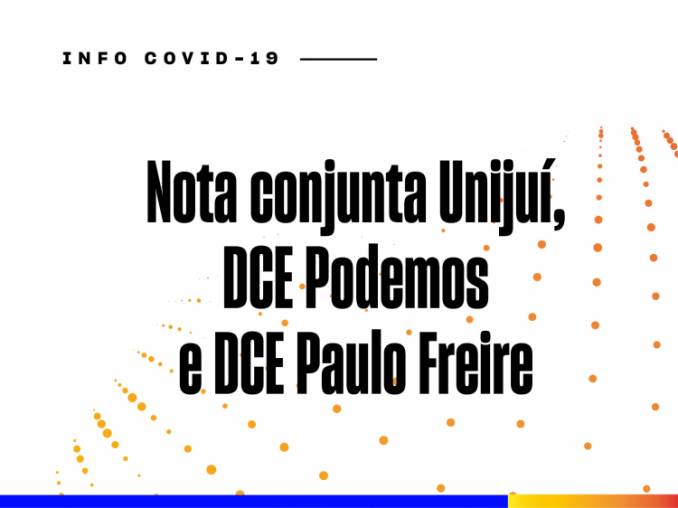 Em reunião realizada na manhã desta quinta-feira, 02 de abril, entre a reitoria da Unijuí e a presidência do DCE Podemos (Ijuí, Panambi e Três Passos) e o DCE Paulo Freire (Santa Rosa), ficou estabelecido que: