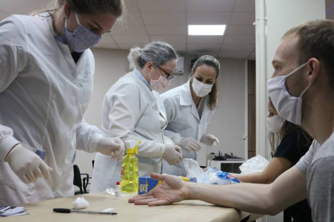 Nesta sexta-feira, dia 24 de abril, no campus da Unijuí, a equipe realizou uma capacitação, coordenada pelo Instituto de Pesquisa e Opinião de Pelotas. Composta por professores pesquisadores vinculados ao Departamento de Ciências da Vida (DCVida), o trabalho também contará com a participação de 25 estudantes dos cursos de Graduação da área da saúde da Universidade. Todos os participantes foram testados nesta sexta-feira antes da ida a campo do fim de semana. E, para reforçar a segurança, a equipe de pesquisa recebeu uma doação da Criatec e empresa incubada Doled, que produziu máscaras de acrílico, as face shields.