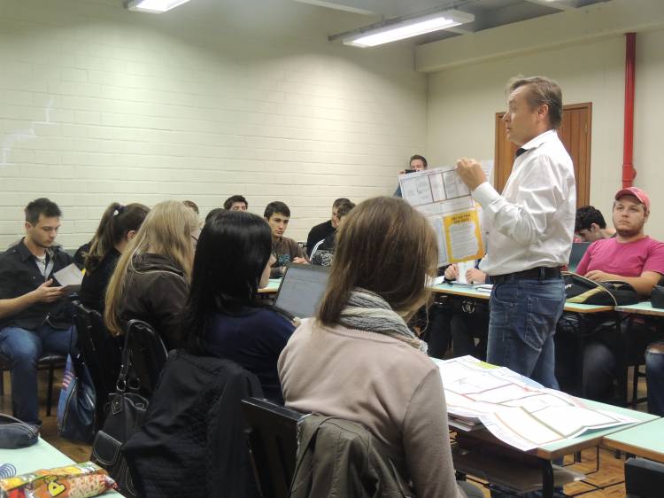 Diante disso, foram convidados palestrantes ao longo de quatro semanas para abordar temáticas inerentes ao empreendedorismo. As aulas contavam com a participação de um profissional que abordava suas experiências, trajetória e recomendações a partir de suas vivências. Num segundo momento, os assuntos eram debatidos com os alunos, que participavam ativamente das discussões. Os temas envolveram incubadora de empresas, a dinâmica de novos negócios no setor industrial e no ramo varejista. Neste dia 21 de maio, encerrou-se este Ciclo abordando “O Papel do Sebrae no Fomento ao Empreendedorismo”, com a participação de Claudiomiro Reis, da Gerência Regional do Sebrae/RS.