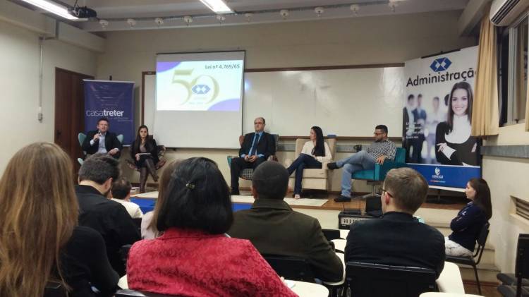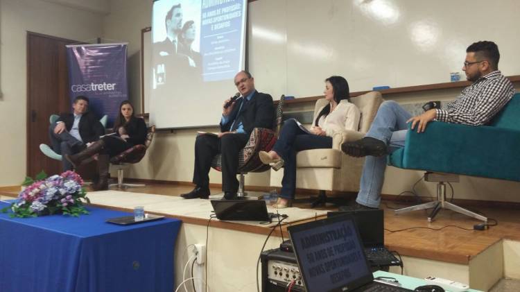 O painel contou com a participação do Professor Pedro Luís Bütenbender, que neste ano recebeu do CRA-RS o Prêmio Mérito em Administração, que é a distinção data a profissionais que se destacam e que contribuem com a Ciência da Administração no Grande do Sul. Participaram também os egressos Douglas Marques, Diretor de Operações do Grupo Tretter e que atualmente está fazendo seu mestrado em Portugal, e Gabriela Cappellari, que é aluna do programa de Mestrado em Desenvolvimento da UNIJUÍ. Também participou do debate a acadêmica Anaceli Hoffmann, presidente do Diretório Acadêmico de Administração do Câmpus Santa Rosa. Após o encerramento do painel foi oferecido aos participantes um coquetel comemorativo aos 50 anos da profissão.