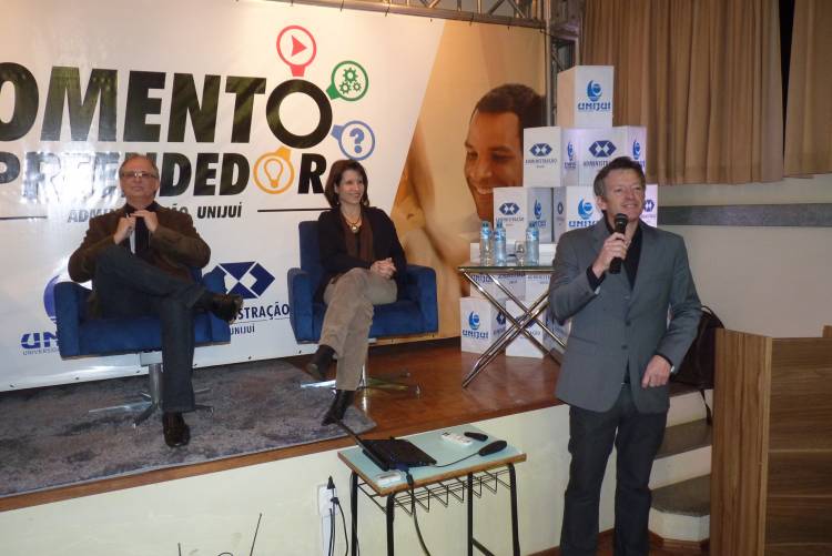 Na noite de quarta-feira, dia 25 de maio, o curso de Administração da UNIJUÍ Campus Santa Rosa realizou o terceiro evento do Momento Empreendedor na Universidade. A temática proposta abordou os cenários econômicos e os reflexos nas organizações. Na abertura o Coordenador do Curso de Administração do Campus Santa Rosa, professor Luciano Zamberlan, ressaltou que é fundamental que os gestores façam seus planejamentos a partir de um minucioso estudo das tendências futuras, para que as decisões tomadas atualmente tenham uma perspectiva de longo prazo.