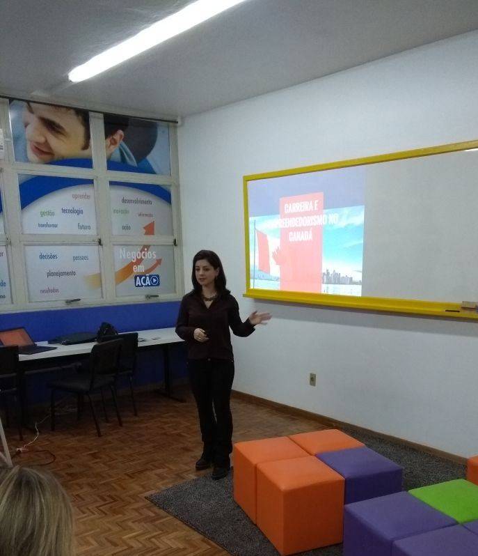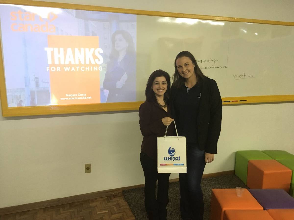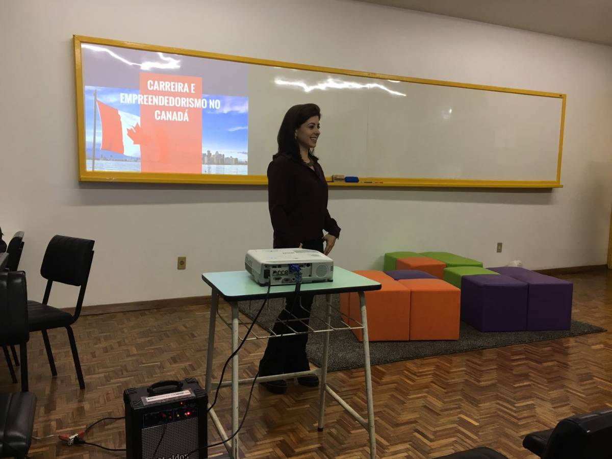 Nos dias 26 e 27 de fevereiro o curso de Administração no Campus Ijuí teve a honra de receber a egressa Narjara Costa para compartilhar suas experiências e sua trajetória profissional em dois eventos, organizados pelo Laboratório de Gestão. Na segunda-feira, 26, ela ministrou o Workshop “Start Canadá!”, com o tema “Empreendedorismo e carreira no Canadá”. Narjara é graduada em Administração e especialista em Gestão de Pessoas pela Unijuí, também é especialista em Psicologia do Trabalho e possui diversas certificações em Coaching. Atualmente ela reside em Vancouver, no Canadá, onde atua como Career Coach (coaching de carreira) e é proprietária da Start Canada, onde atua como consultora de carreira e adaptação no exterior. No workshop ela abordou aspectos gerais e curiosidades sobre o Canadá, bem como apresentou o funcionamento do mercado de trabalho e os procedimentos para tornar-se um empreendedor no país.