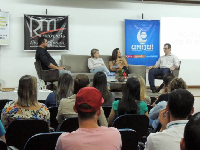 Na noite desta terça-feira, dia 08, os estudantes conferiram o tema Planejamento, estratégias e marketing, com três cases: Empório da Arte, com Maurício e Patrícia Weschenfelder, Boutique de Aromas, com Carla Wallauer Van Ass e PNZ Comunicação, com Fabian Ponzi. A mediação foi de Cleber Cervi.