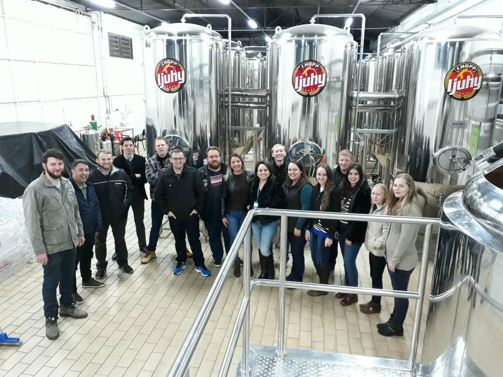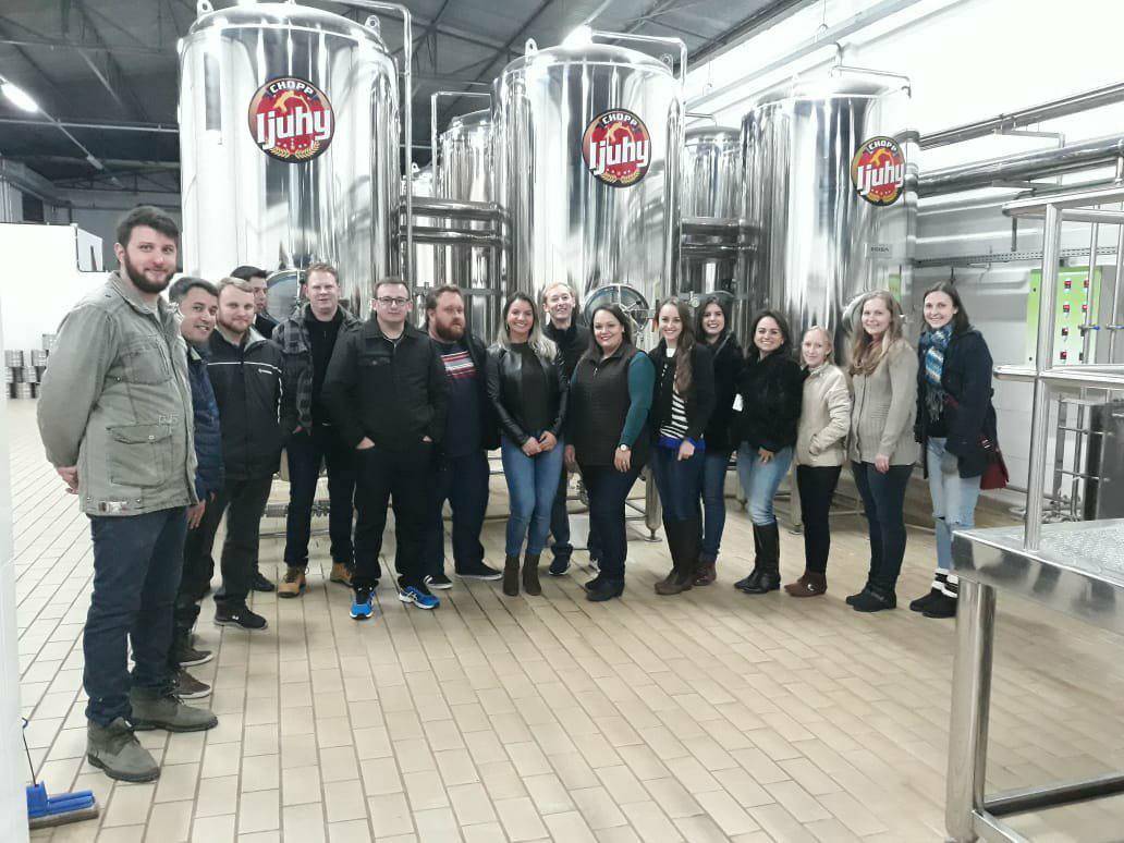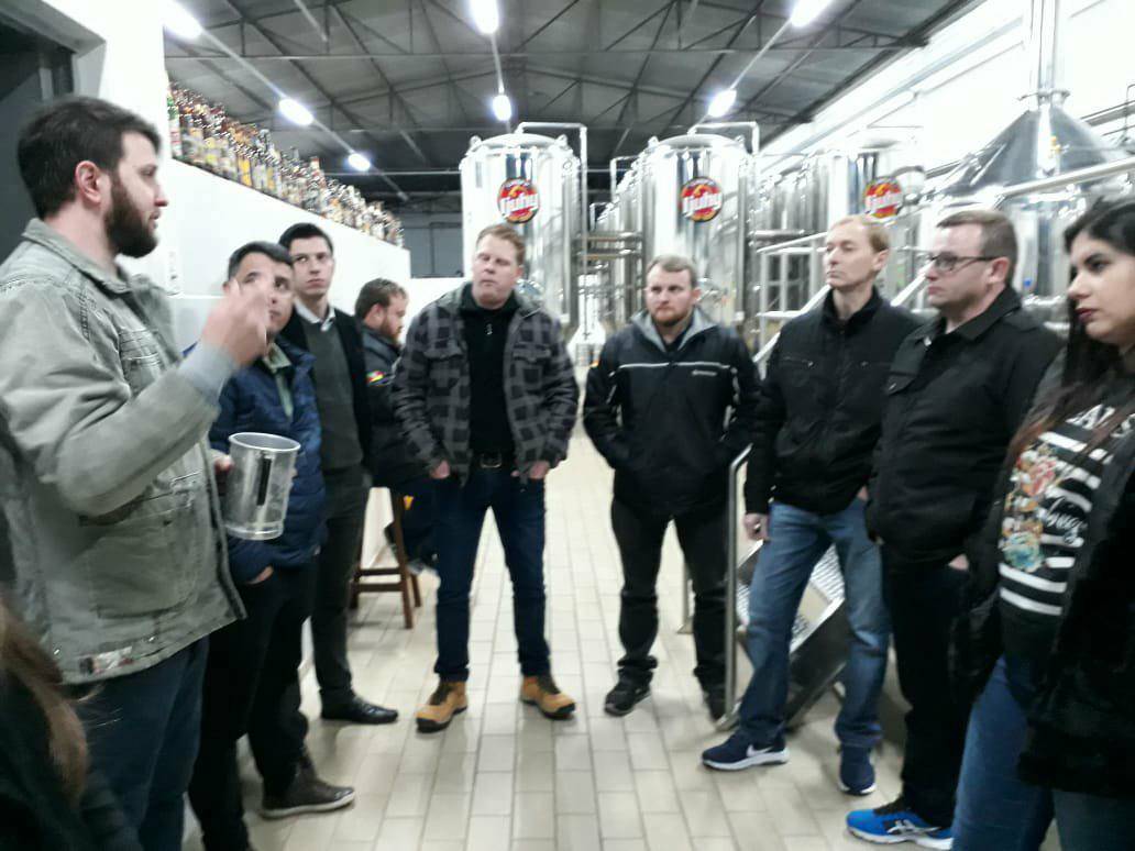 Já na noite de quarta-feira, 23 de maio, os estudantes da disciplina de Fundamentos de Produção e Operações do curso de Administração-Campus Panambi, ministrada pela professora Marisandra Casali, participaram de uma visitação técnica à empresa Chopp Ijuhy. Os acadêmicos se deslocaram até a empresa, em Ijuí, para visualizarem na prática como acontece o processo produtivo da cerveja/chopp. Na oportunidade, o grupo esteve acompanhado pela professora Marisandra e pela analista do Laboratório de Gestão, Aline Leite, e foi recebido na empresa por Thales Handte, técnico cervejeiro. Thales é graduado em Gastronomia e pós-graduado em Tecnologia Cervejeira e além de atuar junto à Chopp Ijuhy também é sócio proprietário de um estabelecimento em Panambi, o Pubi Handte, que produz também cerveja artesanal.