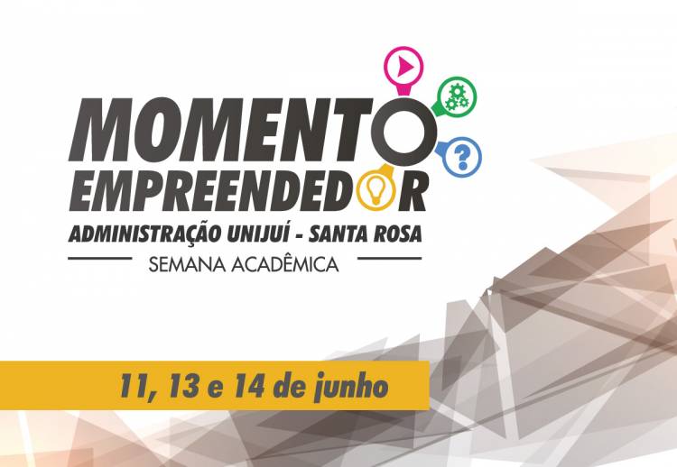 A Criatividade e a Inovação serão os pilares do Momento Empreendedor promovido pelo curso de Administração da UNIJUÍ, na próxima semana. A Semana Acadêmica será realizada nos dias 11, 13 e 14 de junho, no Espaço Coworking e Miniauditórios, no Campus Santa Rosa.