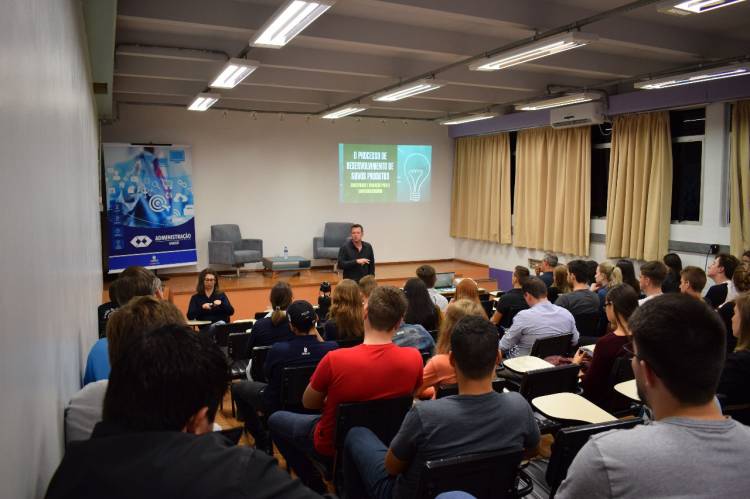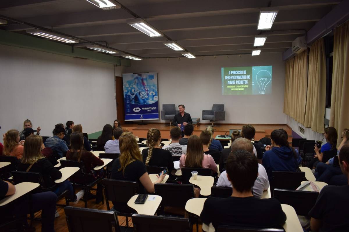 A programação da primeira noite contou com a oficina “O processo de desenvolvimento de novos produtos”, ministrada pelo Coordenador do curso de Administração, Professor Luciano Zamberlan, onde ficou evidenciado os aspectos da criatividade e inovação para o empreendedorismo, destacando as tendências na criação de novos produtos e as mudanças que a tecnologia está gerando.