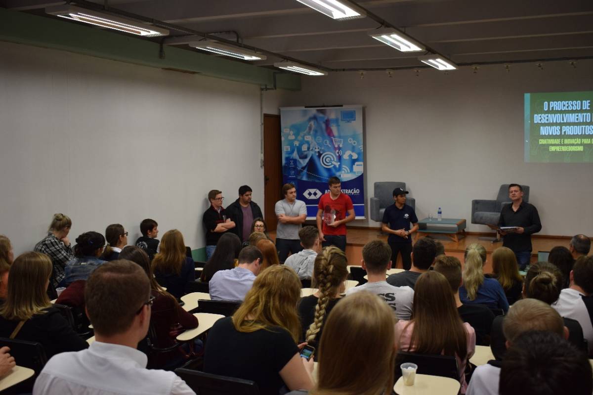 Durante a noite também foi apresentado aos participantes, as equipes vencedoras do Desafio Empreendedor, que aconteceu no último sábado. As equipes tiveram a oportunidade de relatar aos estudantes, a experiência de participar do evento, destacando a solução encontrada para o desafio.