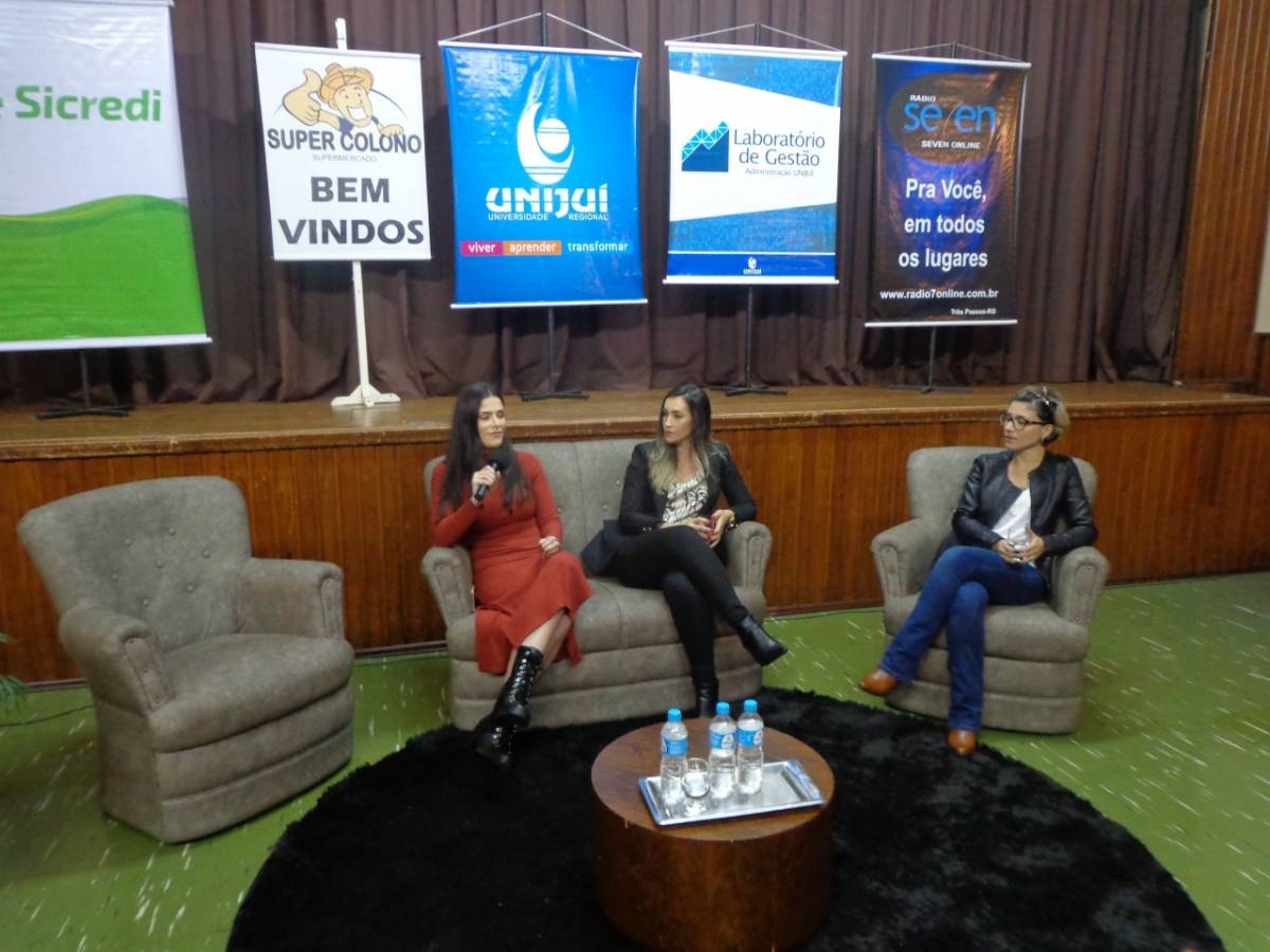 Na primeira noite de discussões o tema foi “Empoderamento Feminino – Mulheres empreendedoras”, com as painelistas Michele Machado, proprietária da Loja de Cosméticos Guria Bonita, Letícia Cassol Huppes, especialista em maquiagem de Noivas e Tayná Petry, sócia-proprietária da Jú Moda Íntima.