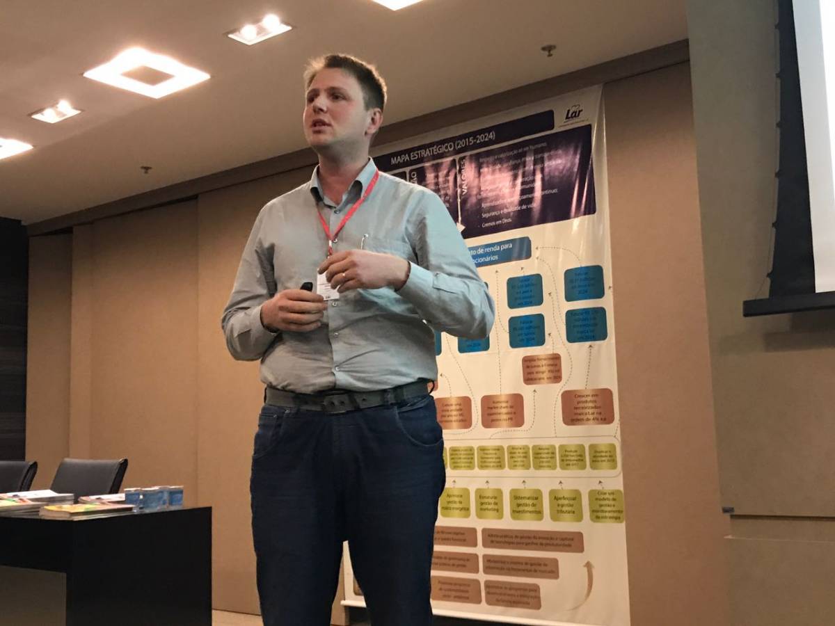 Os estudantes também conheceram as estratégias mercadológicas da Lar a partir de uma exposição do Adm. Jair Meyer, Gerente Administrativo e de Compras, que abordou o marketing institucional e apresentou, em primeira mão, a reformulação das embalagens e o novo posicionamento institucional. Encerrando as palestras, o Adm. Giovane Gaio, Gerente de Logística, descreveu como ocorre o processo de armazenagem e transporte dos produtos da cooperativa.