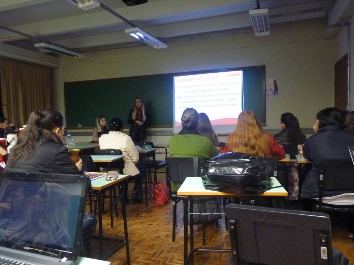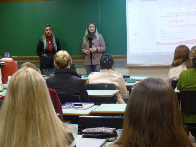 Na noite de quarta-feira, dia 07, os estudantes da turma de Fundamentos de Gestão de Pessoas, do Curso de Administração, Campus Santa Rosa, ministrada pela professora Cláudia Werle Rockenbach, receberam a visita das gestoras do setor de Recursos Humanos da empresa Alibem. A gerente de RH, Tanara Matos Santiago Mess e a analista de desenvolvimento em RH, Tatiane Müller, falaram sobre as práticas de Gestão de Pessoas utilizadas na empresa.