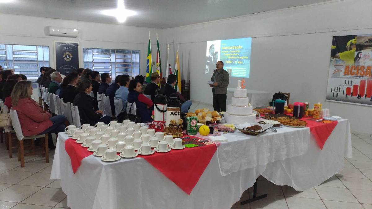 O evento aberto com pronunciamento do Presidente da ACISAT, Sr. Dejalma Turra e do Prefeito Municipal Marcelo Burin e a degustação de um saboroso Café da Manhã.