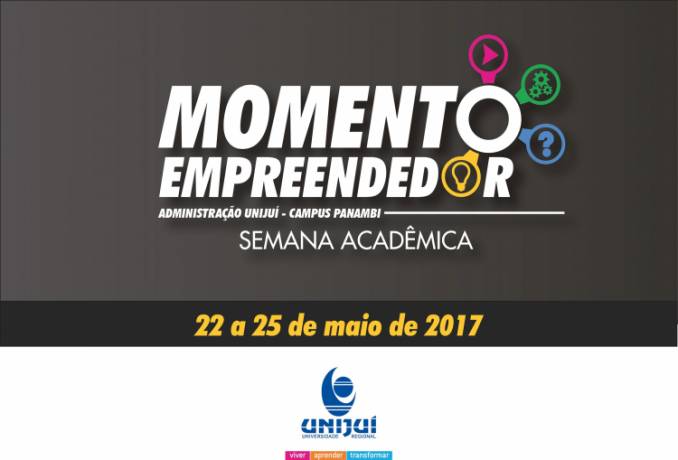 De 22 a 25 de maio o Campus Panambi realiza o "Momento Empreendedor", que contempla a Semana Acadêmica do curso de Administração. O Momento Empreendedor vem sendo organizado pela coordenação do curso de Administração, em conjunto com os estudantes do curso. A ideia é que os próprios acadêmicos pensem e definam os temas emergentes que querem discutir e quem irá palestrar. Além disso, eles têm a possibilidade de participar da gestão de um projeto, colocando em prática vários conceitos utilizados no Curso.