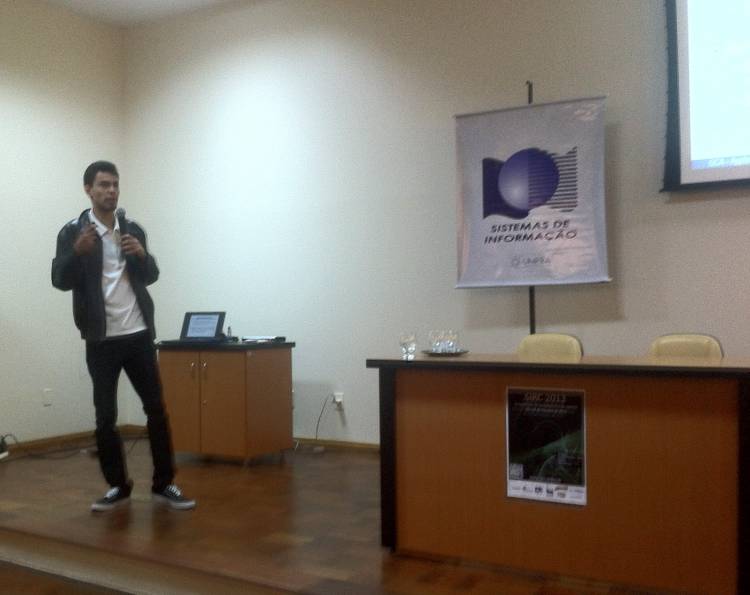 Os acadêmicos do curso de Ciência da Computação na UNIJUÍ Marcos Morgenstern (Câmpus Santa Rosa) e Leonardo Motyczka (Câmpus Ijuí), e o professor da UNIJUÍ / Câmpus Santa Rosa Vinícius Maran participaram no período de 22 a 24 de outubro do XII Simpósio de Informática da UNIFRA (SIRC), na cidade de Santa Maria.