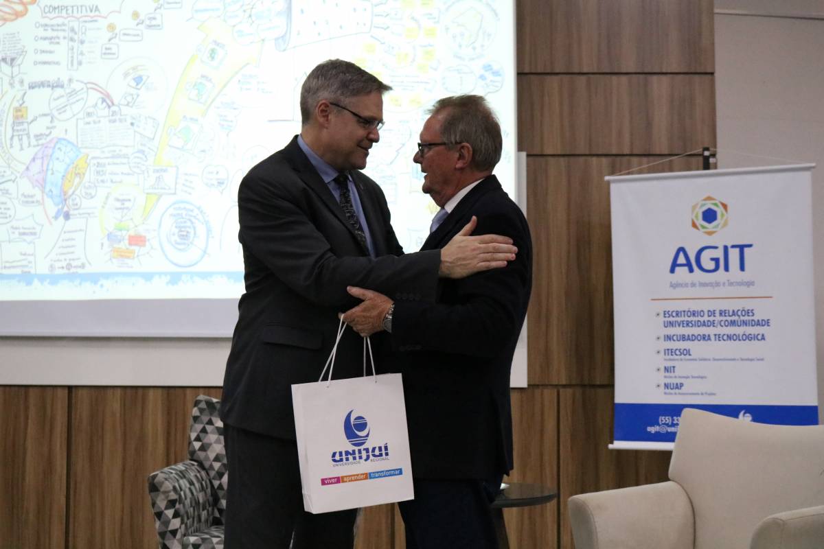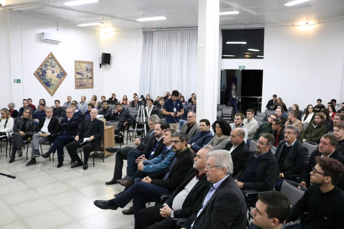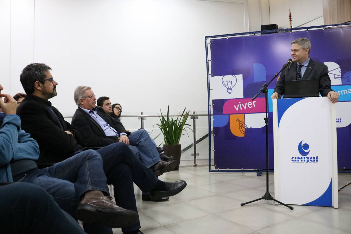 Na plateia, estudantes e professores do curso, a Reitora, Cátia Nehring, a Vice-Reitora de Graduação, Cristina Pozzobon, o Vice-Reitor de Pós-Graduação, Pesquisa e Extensão, Fernando González, o Vice-Reitor de Administração, Dieter Siedemberg, além de autoridades e lideranças regionais. Também participaram da Aula os ex-secretários de Ciência e Tecnologia do Estado, Telmo Rudi Frantz (1995-1998) e Artur Lorentz (2008-2010).