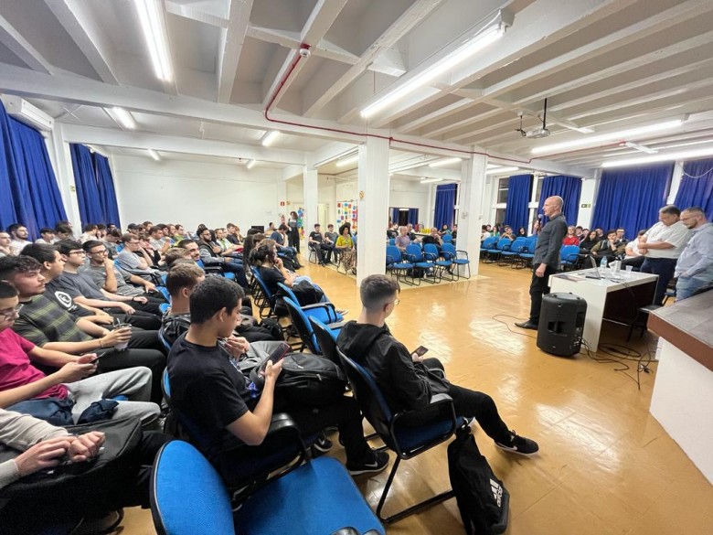 Enquanto alguns estudantes sonham em seguir no mestrado e no doutorado, outros desejam empreender, trabalhar em home office ou em empresas físicas, vivenciando os desafios e as possibilidades de uma organização. E é pensando em atender aos diferentes anseios que o grupo de professores vêm convidando representantes de empresas para um bate-papo com os estudantes. Ontem, os acadêmicos acompanharam uma palestra sobre imersão no mercado de trabalho com o programador WEB, Maicol Genz e com o analista de Desenvolvimento, Alexandre Knob, ambos da empresa Abase Sistemas, da cidade de Três de Maio.