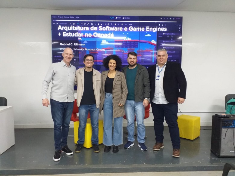 “Foi muito legal poder falar um pouco sobre meu trabalho como pesquisador. Tanto em Santa Rosa quanto em Ijuí, houve bastante engajamento dos estudantes, que fizeram perguntas técnicas sobre as áreas de Engenharia de Software e Desenvolvimento de Jogos, e também sobre intercâmbio”, contou Gabriel, agradecendo também aos professores Edson Padoin e Gerson Battisti pelo convite.