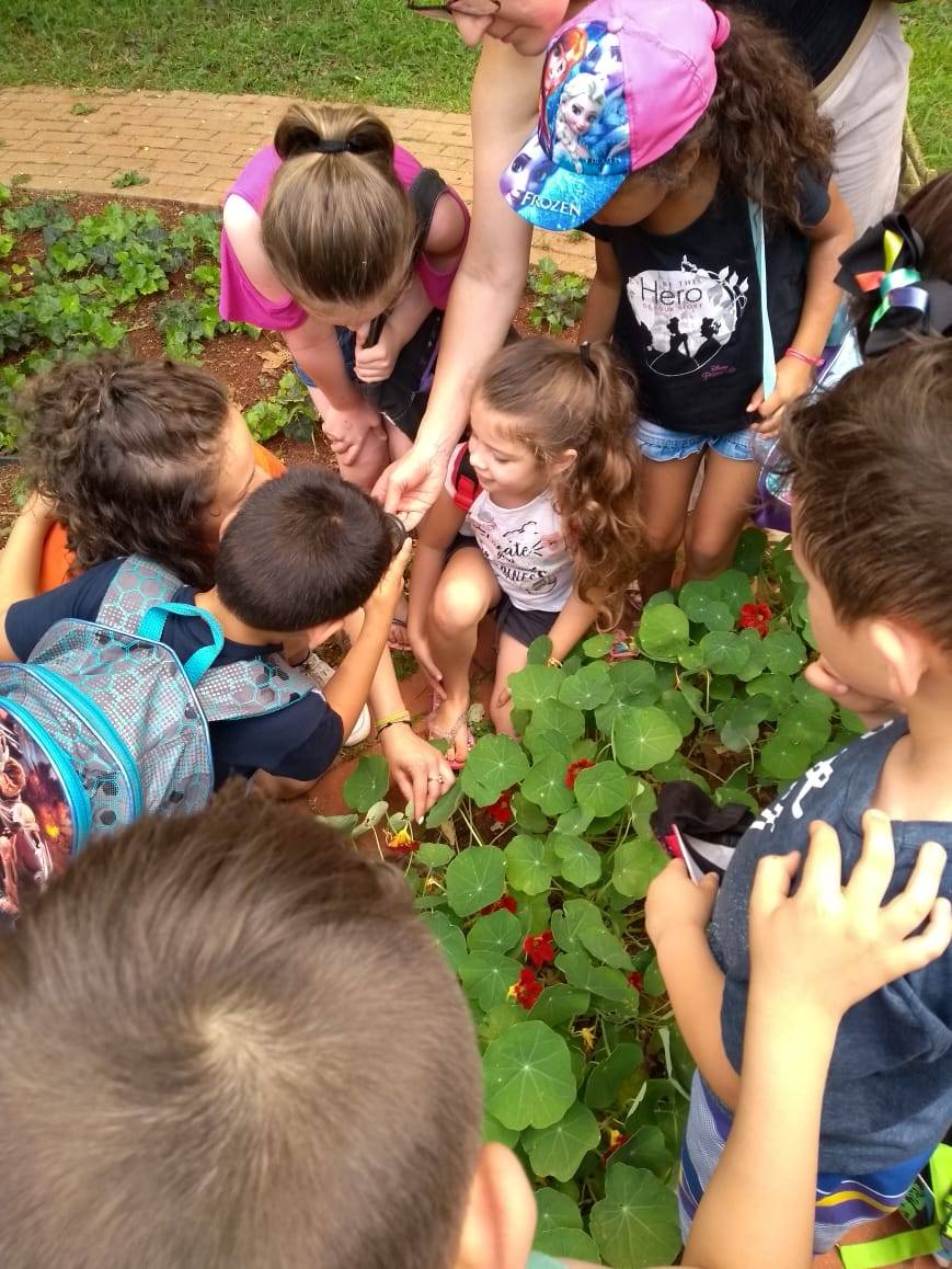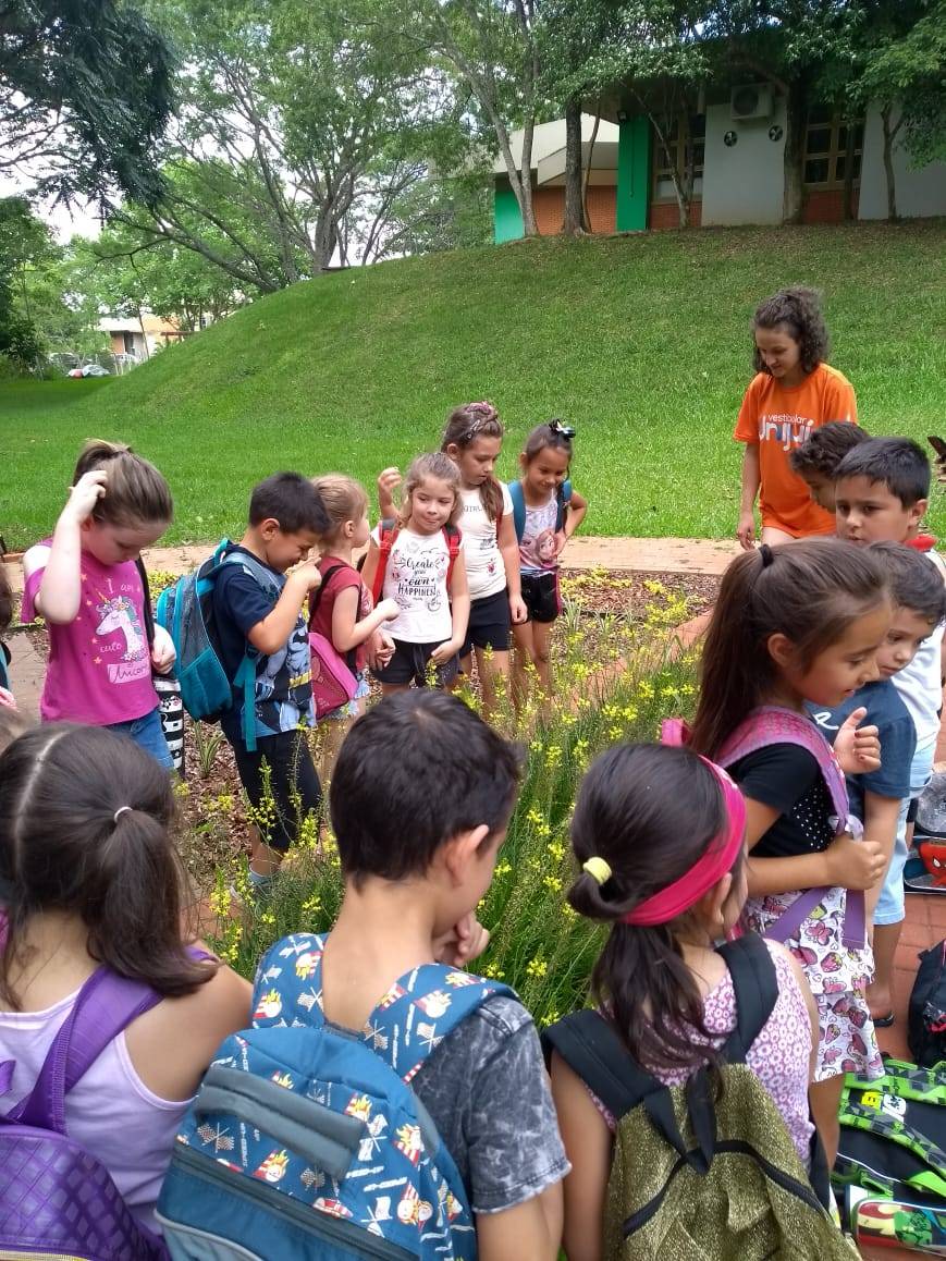 No Laboratório foram recebidas e acompanhadas pela técnica, estagiaria, bolsistas PET-BIOLOGIA e pela professora Vidica Bianchi. Além da visita ao laboratório para fazer perguntas e ouvir resposta às inquietações das crianças, observar com lupas os exemplares destes grupos de insetos da coleção didática seca, as crianças também tiveram a oportunidade de visitar os jardins temáticos (espiral de ervas e a rosa dos ventos) mantidos pelo Grupo PET, com apoio do Setor de Patrimônio da Unijuí. Este se tornou um local de visitas, discussões e estudos sobre diversas temáticas. As crianças observaram as joaninhas e abelhas visitando as flores dos jardins. Esta vivência, de interação com o conhecimento que trazem da escola, produz outros significados aos saberes na constituição dos sujeitos enquanto cidadãos capazes de refletir sobre o mundo que os cerca.
