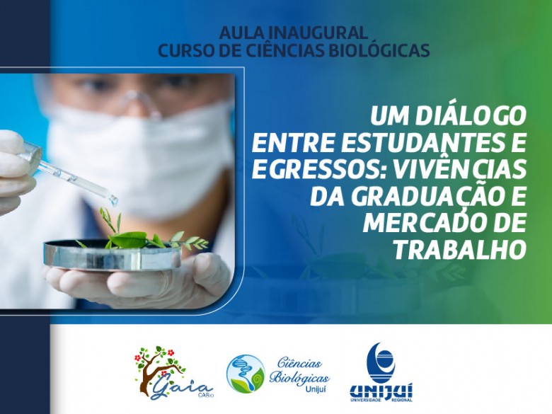 O curso de Ciências Biológicas da Unijuí realiza no dia 20 de abril, das 19h30 às 21h, a aula inaugural com o tema “Um diálogo entre estudantes e egressos: vivências da graduação e mercado de trabalho”.