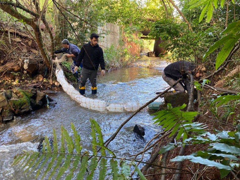 Dentro da programação da Semana Mundial do Meio Ambiente da Unijuí, o Núcleo de Gestão Ambiental (NGA) e o Programa de Educação Tutorial - PET Biologia realizaram na tarde desta sexta-feira, 3 de junho, a limpeza das margens e do Arroio Espinho, que se desloca ao longo da Trilha Vó Preta. Além disso, foi instalada uma ecobarreira no curso d'água, próxima à Rua Guilherme Timm, com o intuito de evitar que o lixo entre na Área de Preservação Permanente (APP).