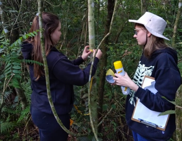 Uma turma de estagiárias do curso de Ciências Biológicas da Unijuí, matriculadas no Estágio em Ciências Biológicas I, está realizando o levantamento das espécies exóticas invasoras de toda a área do campus da Unijuí em Ijuí. A atividade está relacionada a uma condicionante da licença ambiental do campus, que solicita um Plano de Controle, Manejo e Erradicação das Espécies Exóticas Invasoras de toda a área licenciada do campus. As atividades estão sendo coordenadas pela professora da disciplina, Juliana Fachinetto, e por Mariluci Cavinatto, responsável pelo Setor de Gestão Ambiental da Fidene. O grupo ainda conta com o apoio da JS Florestal, a partir dos engenheiros florestais Jorge Schirmer e Adrieli Dallabrida, que fizeram um treinamento prático com as estudantes; e dos funcionários Odelcio Stefani e Jorge Alcantara, que auxiliam durante as atividades práticas no campo.