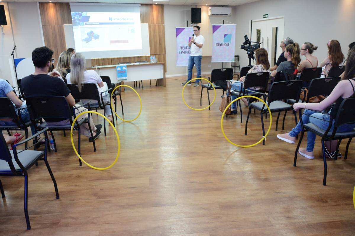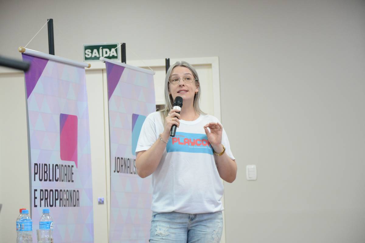 Também na abertura, a coordenadora dos cursos, professora Rúbia Beatriz Schwanke, observou que a programação proporciona aos participantes o desafio de compreender as demandas, com foco no melhor resultado. Em seguida, a Vice-reitora de Graduação, professora Cristina Pozzobon, relembrou o sucesso de eventos passados dos cursos de Comunicação, assim como segunda edição do evento, cumprimentando também os egressos que trazem à universidade suas vivências e experiências, desejando boa sorte aos alunos jogadores.