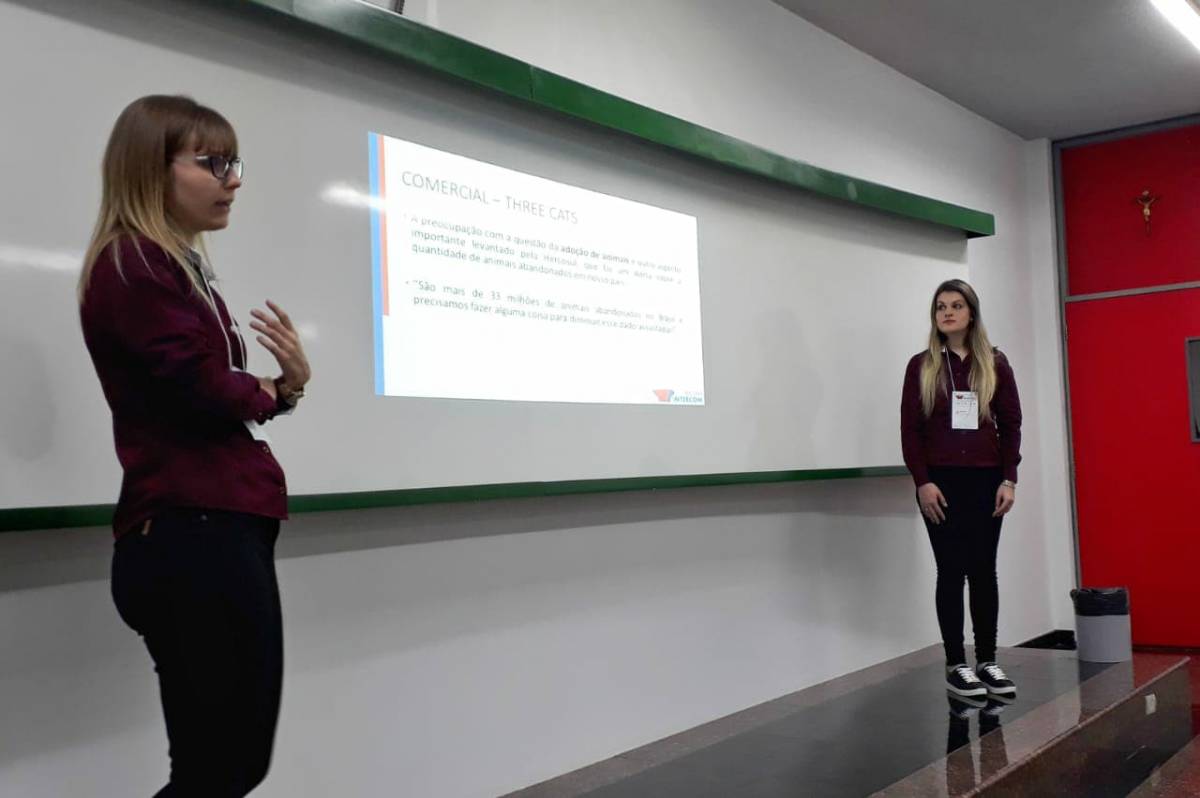 As apresentações dos trabalhos pelos alunos da Unijuí iniciaram na sexta-feira pela manhã, com os trabalhos que concorreram no Expocom, e finalizaram no sábado à tarde. Na categoria Intercom Júnior foram cinco trabalhos defendidos. As acadêmicas de Publicidade e Propaganda, Carine Massi e Bárbara Schmidt, defenderam o artigo O Marketing em campanhas: estudo de caso das marcas Three Dogs e Three Cats, orientado pela professora Nilse Maldaner. “Ter participado de outros congressos como ouvinte já havia sido muito enriquecedor, mas poder apresentar o meu trabalho junto com minha colega Bárbara, foi com certeza uma experiência única! É extremamente gratificante saber que nosso artigo foi aceito e melhor ainda foi poder compartilhar a nossa temática com os demais estudantes e professores que estiveram presentes. Durante esses dias de evento, eu também pude conferir muitos trabalhos interessantes, com abordagens totalmente diferentes e vi muita coisa que estudei na graduação sendo aplicada na prática”, comenta Carine.