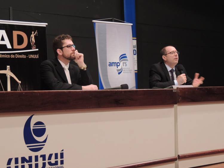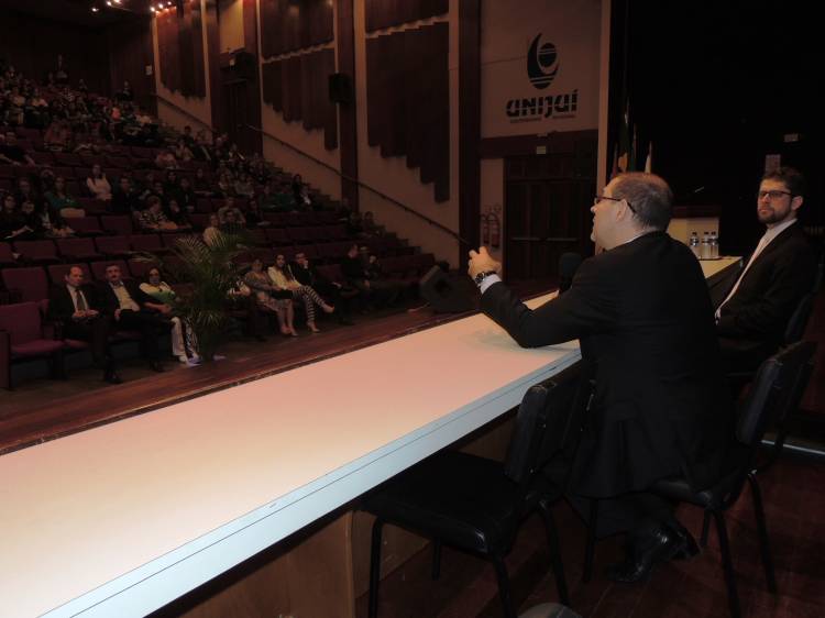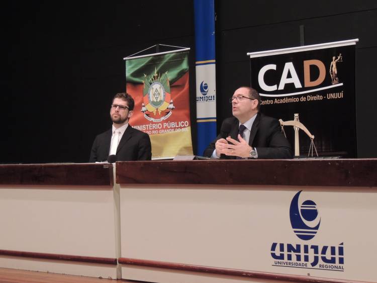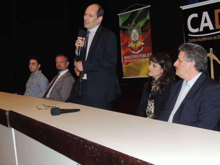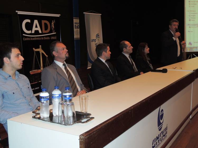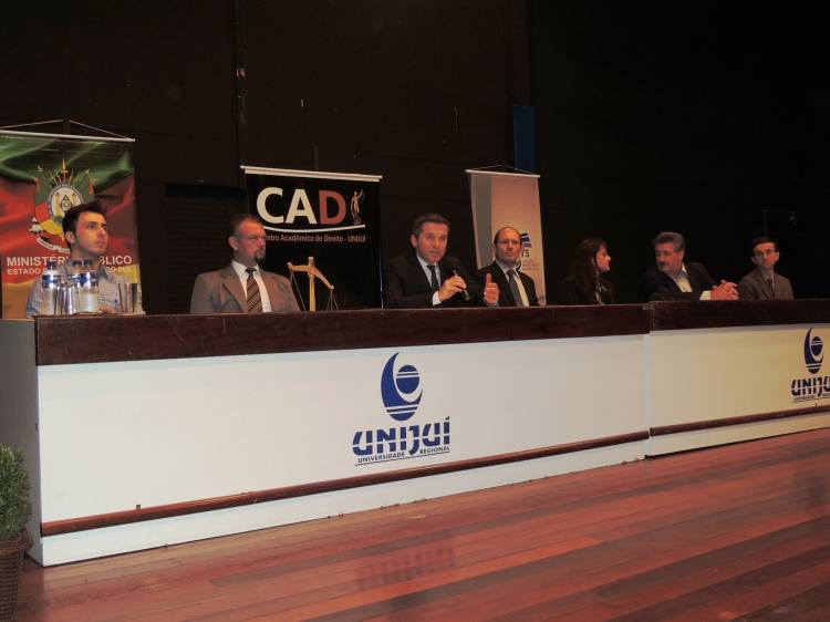 A solenidade de abertura contou com os pronunciamentos do Dr. Érico Fernando Barin, representante da Associação do Ministério Público do Rio Grande do Sul e Diretor da Promotoria de Ijuí; do Prefeito Municipal, Fioravante Ballin; e do Chefe do Departamento de Ciências Jurídicas e Sociais, professor Aldemir Berwig, representando, no ato, a Reitoria da Universidade.
