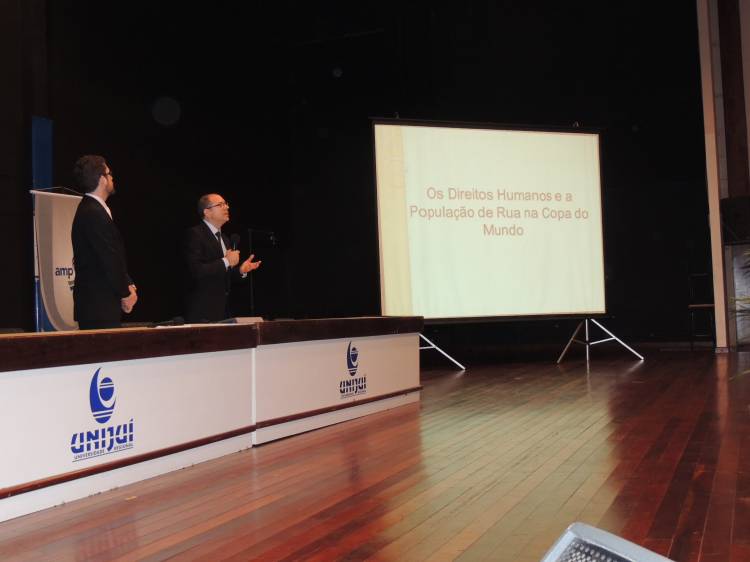 Em sua palestra, o Promotor falou sobre os direitos humanos e a população de rua na copa do mundo, falando do esforço conjunto do Ministério Público e um conjunto de órgãos públicos e entidades no sentido de garantir os direitos a essa parcela da população que vive nas ruas e que enfrenta uma vulnerabilidade maior nos períodos em que acontecem grandes eventos. Segundo o Dr. Mauro, esta ação está embasada em experiências anteriores, no âmbito nacional, como a Copa das Confederações, ECO 92 e outros grandes eventos.