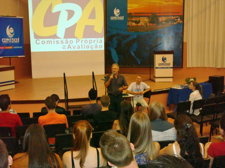 No decorrer da noite os calouros puderam socializar informações com o Chefe de Departamento de Ciências Jurídicas e Sociais (DCJS), professor Aldemir Berwig, que explicou o funcionamento das estruturas do curso, departamento e Universidade. Na sequência a Egressa do curso de Direito e mestranda do curso de Direitos Humanos, Danielli Regina Scarantti, relatou a sua vivência acadêmica durante o período de graduação até a entrada no mestrado. Os calouros também foram orientados sobre o processo de auto avaliação da UNIJUÍ, pelos representantes da Comissão Própria de Avaliação (CPA), professor Celso Martinazzo e o técnico Administrativo Adroaldo Traczynski.