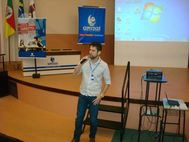 O Escritório de Relações Internacionais (ERI) esteve participando com informações sobre parcerias entre UNIJUÍ e instituições internacionais, mostrando as oportunidades de intercâmbio para o acadêmico, com a presença da Técnica Administrativa Vanderleia De Andrade Haiski. Na oportunidade o professor do curso de Direito e do Mestrado em Direitos Humanos, Mateus Fornasier, trouxe a sua experiência como professor na área do mestrado e falou sobre a importância da pesquisa jurídica no decorrer da caminha universitária.