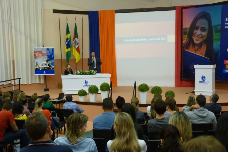 Os estudantes do curso de Direito da UNIJUÍ participaram na noite de segunda-feira, dia 21, no auditório do Campus Santa Rosa da aula inaugural, que teve como tema “O novo CPC na perspectiva instituída pelo Estado Democrático de Direito: da teoria à prática”.