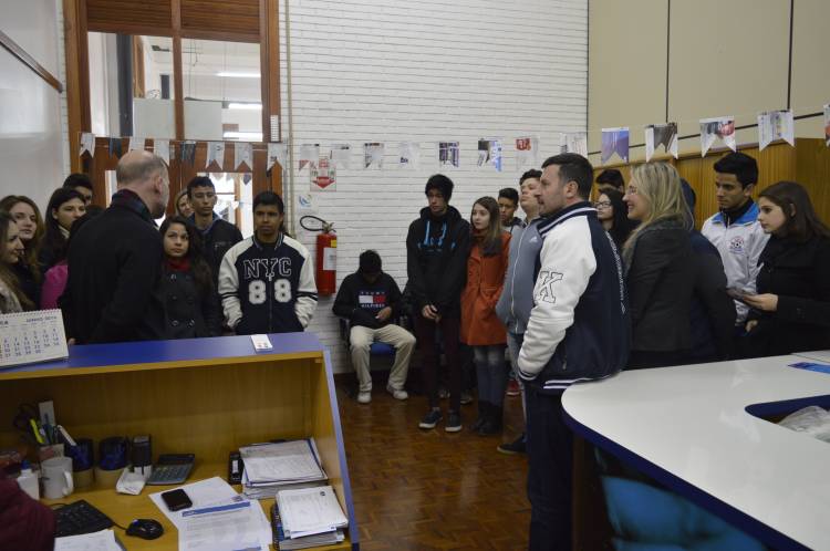 Um grupo de 30 estudantes da Escola Estadual de Ensino Médio Emil Glitz, de Ijuí, esteve visitando alguns espaços da UNIJUÍ / Campus Ijuí na última terça-feira, 14 de junho, como atividade integrante do Projeto Cidadania para Todos, desenvolvido pelo Curso de Direito da Universidade.