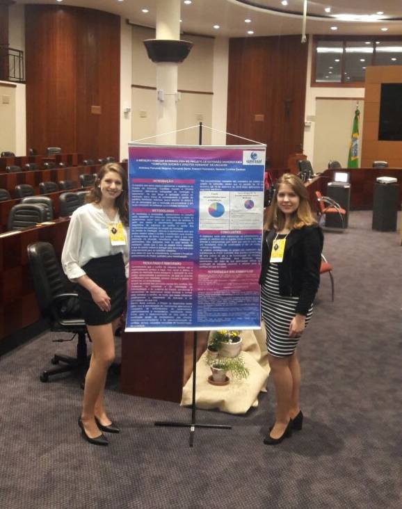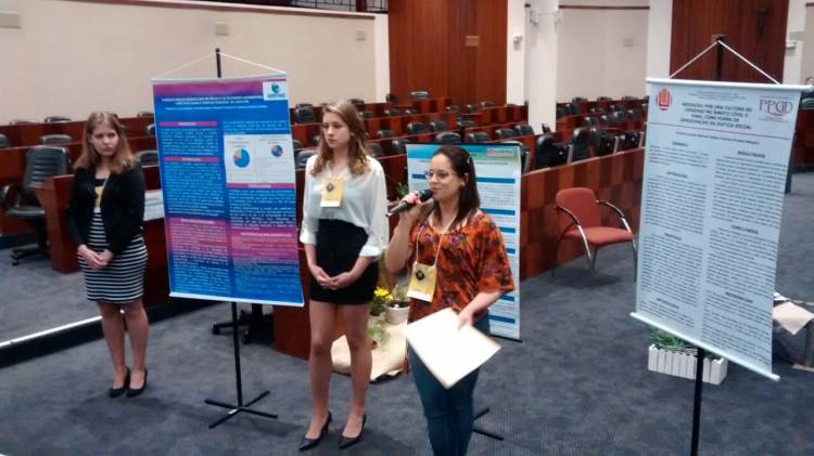 Além das palestras e do contato com os mediadores judiciais as estudantes apresentaram trabalho em forma de pôster na Tribuna, relatando a experiência em mediação pré-processual, desenvolvida pelo projeto de extensão no Campus Santa Rosa, destacando a recente celebração do Convênio com o Tribunal de Justiça que permitiu a instalação do CEJUSC-UNIVERSITÁRIO junto as instalações do Escritório Modelo de Santa Rosa.