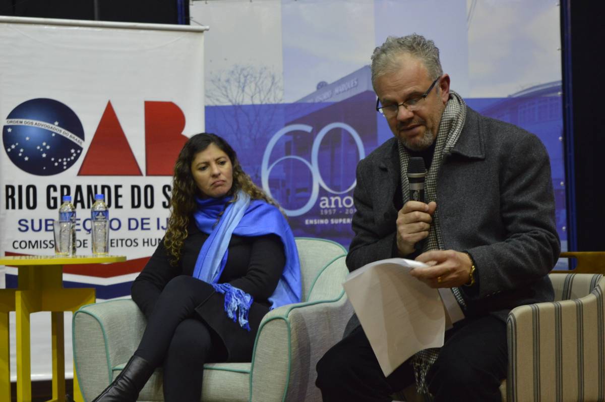 “É necessário discutir tais temáticas numa perspectiva local. O debate teórico, embora importantíssimo, muitas vezes faz com que a percepção em torno dos direitos humanos se situe num plano muito abstrato, de modo que as pessoas ignoram o fato de que as atitudes mais elementares da vida passam pelo reconhecimento de direitos humanos”, salientou Pâmela Copetti Ghisleni, membro da Comissão de Direitos Humanos da OAB/Ijuí e aluna do Curso de Mestrado em Direitos Humanos da UNIJUÍ.