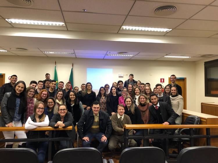 No dia 26 de julho, a turma do componente curricular optativo e ministrado no período das férias pela professora Maristela Gheller Heidemann, denominado de Juizados Especiais Cíveis, prestigiou a audiência de conciliação do Juizado Especial Cível. Após, realizaram o acompanhamento de todas as audiências, que aconteceram de forma didática, com o Juiz Leigo William Gregori Moreira. Os estudantes puderam agregar conhecimentos sobre o procedimento e o sistema do Juizado, com as explicações das servidoras Silviane Boufleur e Francine John, lotadas no Juizado desta Comarca, bem como o Juiz Titular do Juizado, Dr. Eduardo Giovelli, que proporcionou uma excelente palestra, explicando a origem do Juizado Especial Cível e o andamento das causas.