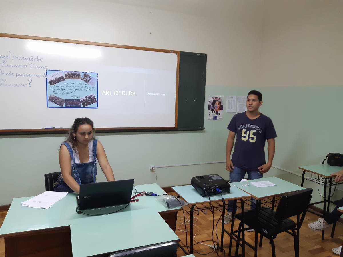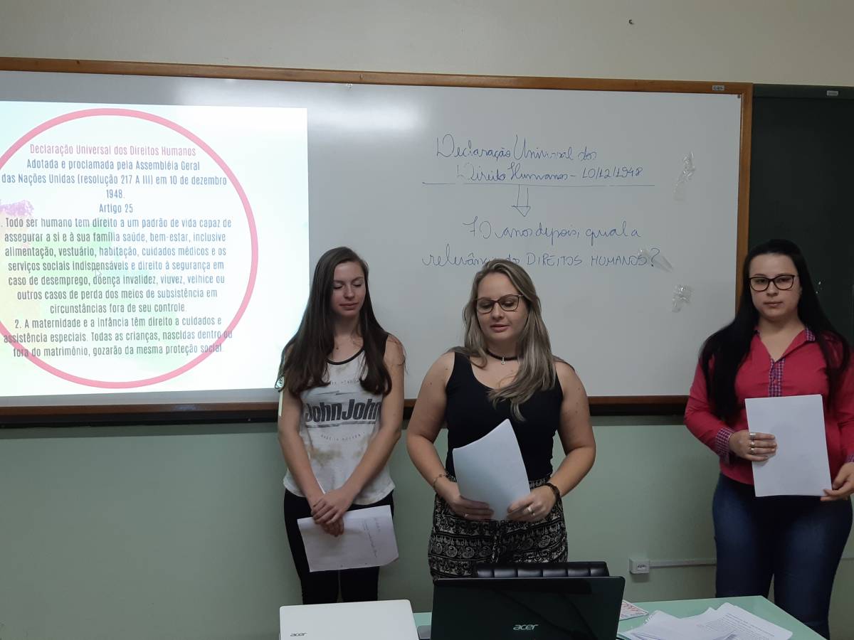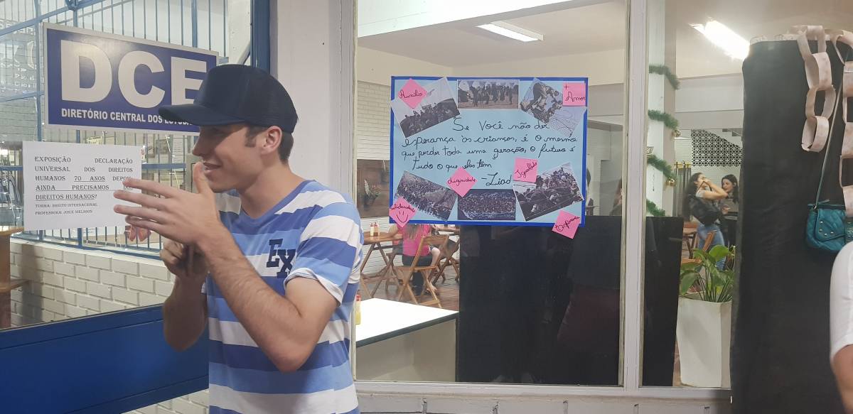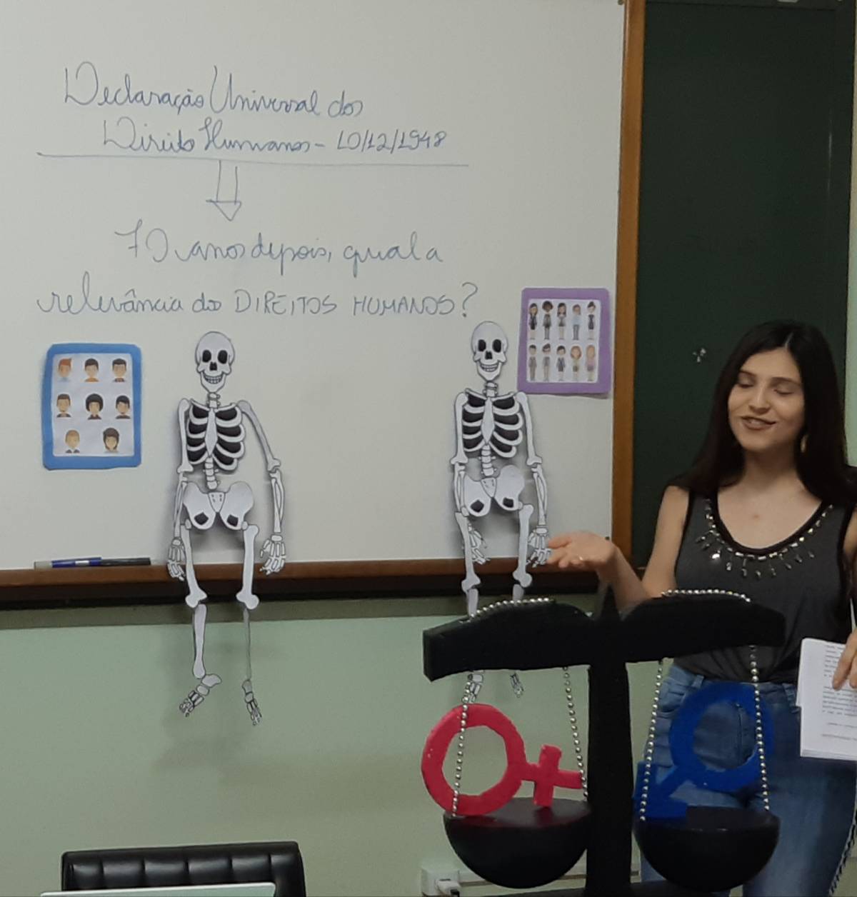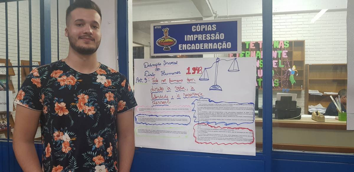 A atividade é alusiva aos 70 anos da Declaração Universal dos Direitos Humanos, que ocorre no dia 10 de dezembro. Os estudantes analisaram os 30 artigos do documento e verificarem na comunidade local de que modo aqueles direitos estavam ou não sendo respeitados e vivenciados. “A Declaração é extremamente importante para a nossa sociedade e surge após a Segunda Guerra Mundial. Ela surgiu para assegurar direitos que foram violados nesta Guerra”, observa o estudante Luiz Gustavo Lippi Sarmento.