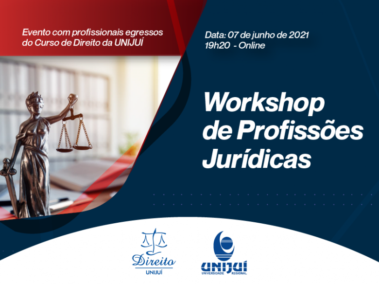 Na próxima segunda-feira, dia 7 de junho, a partir das 19h20, acontece o Workshop de Profissões Jurídicas, somente com profissionais egressos dos cursos de Direito da Unijuí – campi de Ijuí, Santa Rosa e Três Passos.
