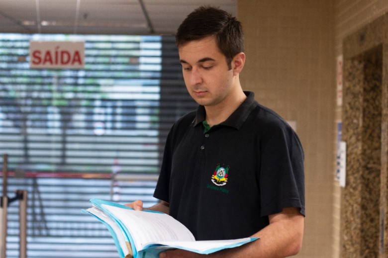 Tendo como primeira experiência a atuação no Projeto de Extensão Resolução Consensual de Conflitos - Balcão do Consumidor, Rodrigo teve a oportunidade de iniciar, em junho de 2019, um estágio voluntário na Defensoria Pública Estadual (DPE) no período da manhã, enquanto também estagiava, de maneira remunerada, na Vara do Trabalho de Ijuí. “O início do estágio na DPE aconteceu por indicação de uma amiga, que me falou muito bem do trabalho. Já integrado à Defensoria, surgiu a oportunidade de fazer a prova para estágio remunerado na 4ª DPE de Ijuí - uma das duas defensorias cíveis do município. Acabei sendo selecionado para uma das duas vagas, iniciando como remunerado em março de 2020”, explica o estudante, que teve a oportunidade de seguir estagiando, mesmo após a conclusão da graduação.