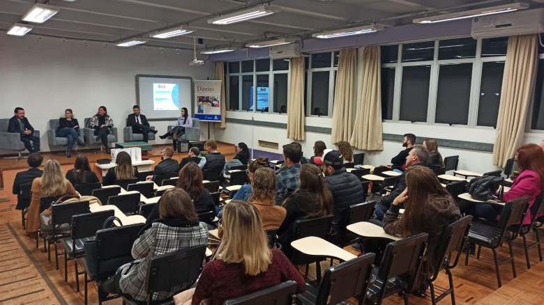 Os estudantes do curso de Direito, da Unijuí campus Santa Rosa, participaram nesta segunda-feira de um bate-papo organizado Comissão da Jovem Advocacia, da OAB - Subseção Santa Rosa, em parceria com Universidade. “OAB vai à Universidade” foi um momento de diálogo proporcionado aos acadêmicos, com os advogados: Camila Paumam, Gabriel Henrique Hartmann, Giancarlo Carvalho, Daniela Lucca Leitchtweis e também com a presidente da subseção Santa Rosa, Sandra Lameira.