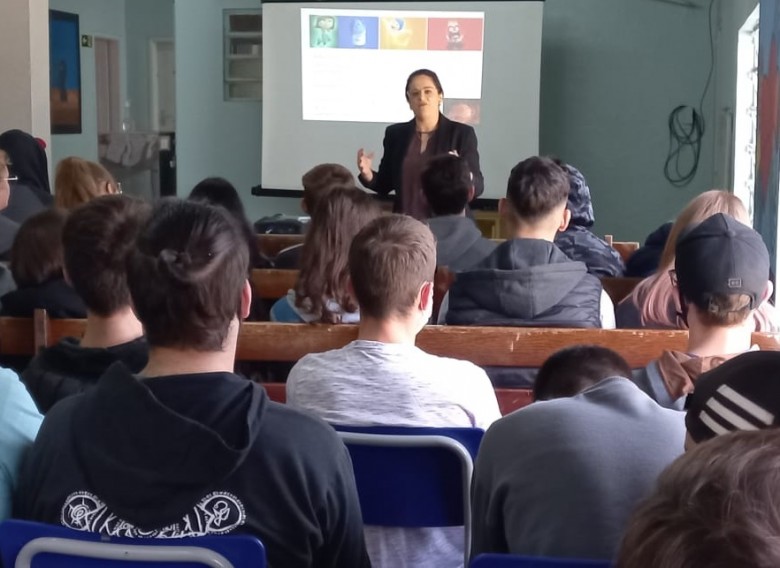 A apresentação foi destinada a cerca de 90 alunos, do primeiro, segundo e terceiro anos do Ensino Médio. A professora Fernanda explicou que a realização da atividade surgiu de uma iniciativa da própria escola. “Foi um convite que a escola fez para a Universidade, para estarmos lá falando sobre um tema que para eles é importante, que é o tema da comunicação não violenta”, relatou. A fala sobre essa temática também já foi realizada no Colégio Ipiranga, de Três Passos, e está programada para ocorrer em outras escolas da Região nos próximos meses.