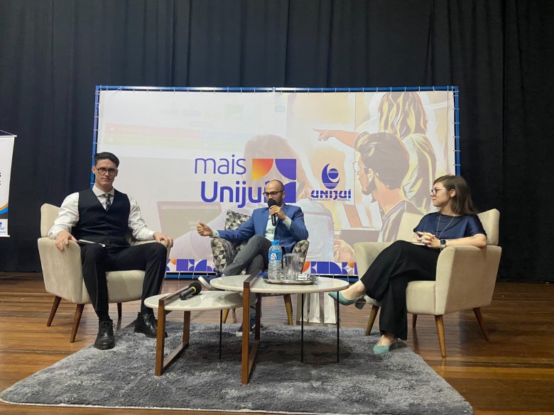 Em Santa Rosa, foi debatido o tema “A advocacia empresarial e a estruturação jurídica para startups”, junto ao miniauditório B105. À frente da discussão esteve a mestre e especialista em Direito Empresarial, Gabrielle Cristina Endres. Eduarda Kreutz foi a aluna convidada e atuou como mediadora a professora Gabrielle Scola Dutra.