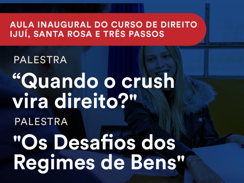 Na quarta-feira, dia 13 de março, o curso de Direito da Unijuí promoverá sua aula inaugural online, a partir das 19h, envolvendo os estudantes dos três campi: Ijuí, Santa Rosa e Três Passos. O evento será realizado pelo curso com apoio do Instituto Brasileiro de Direito da Família - IBDFAM e das Subseções da OAB dos três municípios.